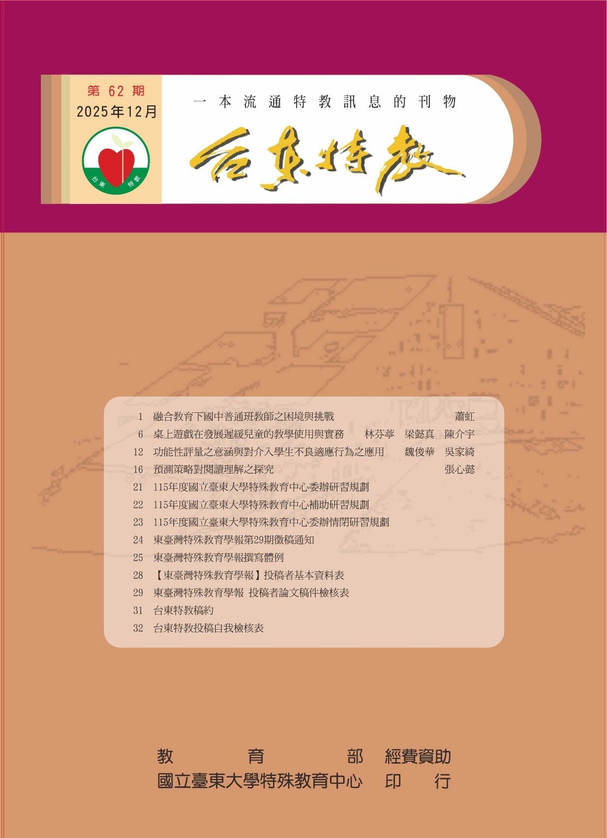台東特教62-封面、封底、目錄、封底裡 |
